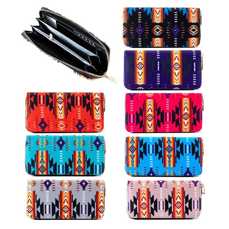 Womens Printed Fleece Wallet w/ Zipper (0512)