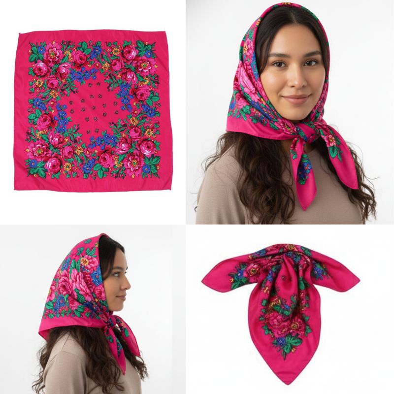 Kokum Floral Printed Scarf Color: Fuchsia Size: 30″ x 30″ Material: 100% Polyester Design: Floral Quantity: 10/Pack Sold By Pack!