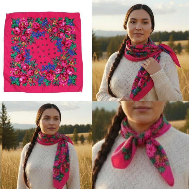 Kokum Floral Printed Scarf Color: Pink Size: 30″ x 30″ Material: 100% Polyester Design: Floral Quantity: 10/Pack Sold By Pack!