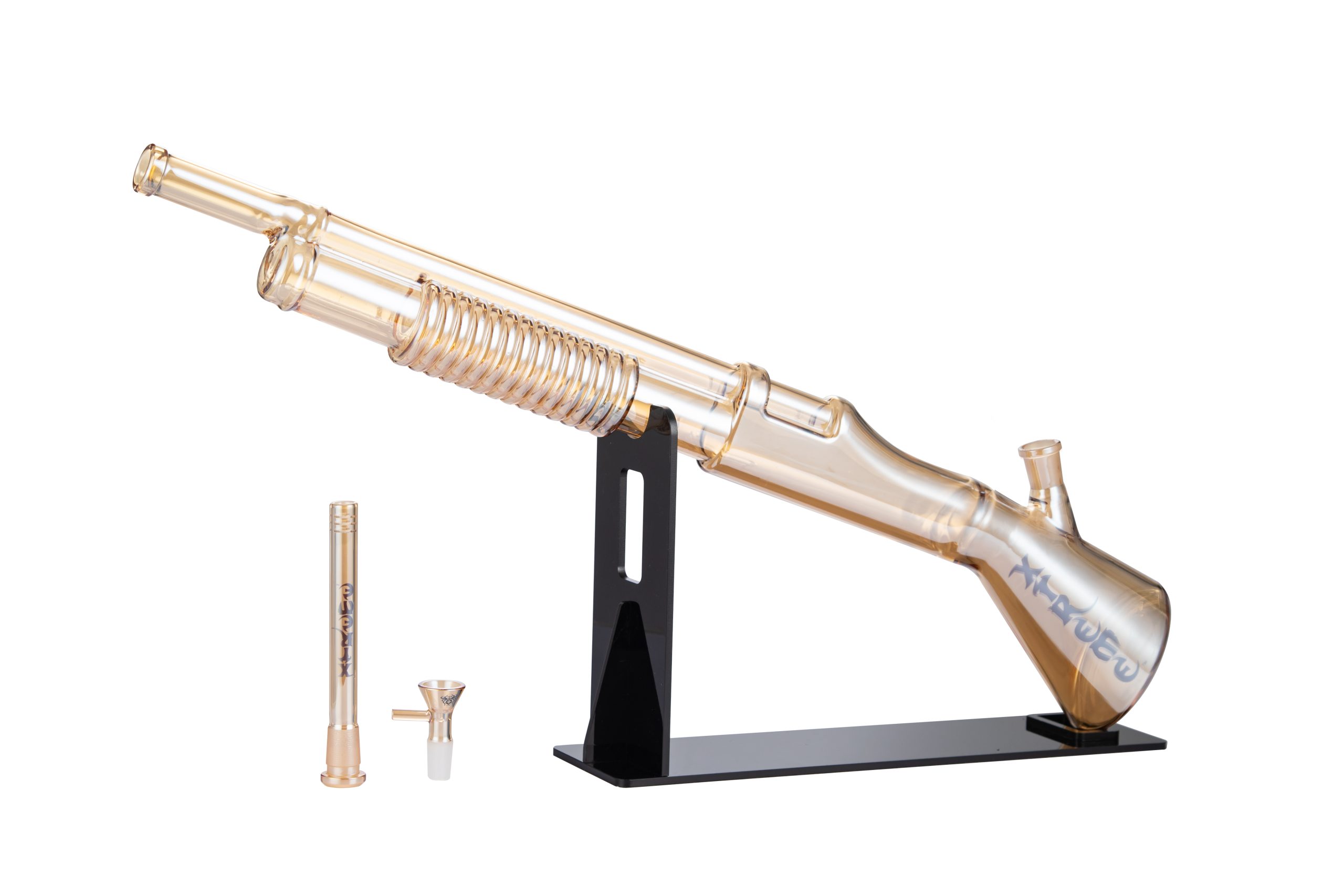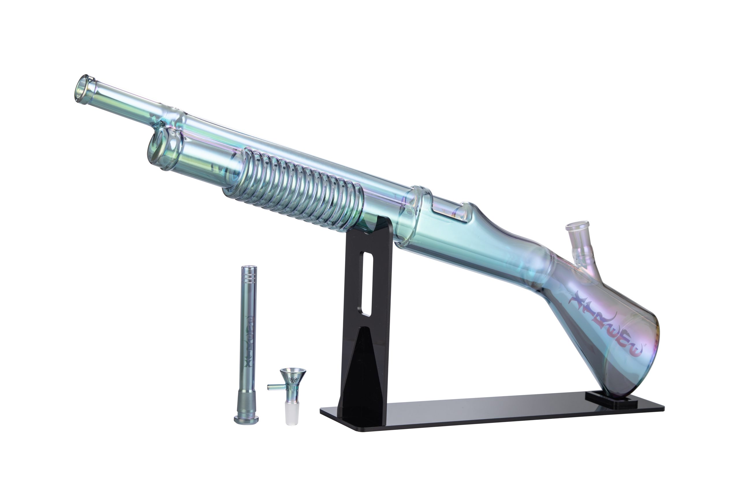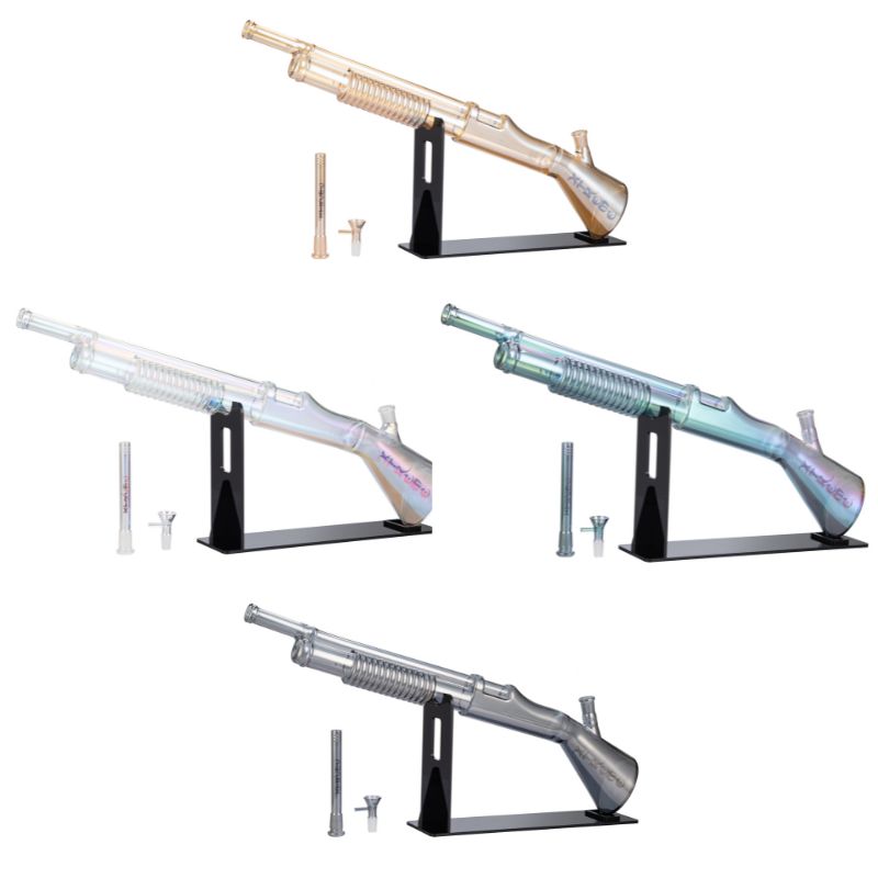 27″ Xtreme Shotgun Glass Bong With shaft Material:Glass Color: Gold/Black/Transparency Green/Rainbow Quantity:8 Pcs / Box Sold by Box