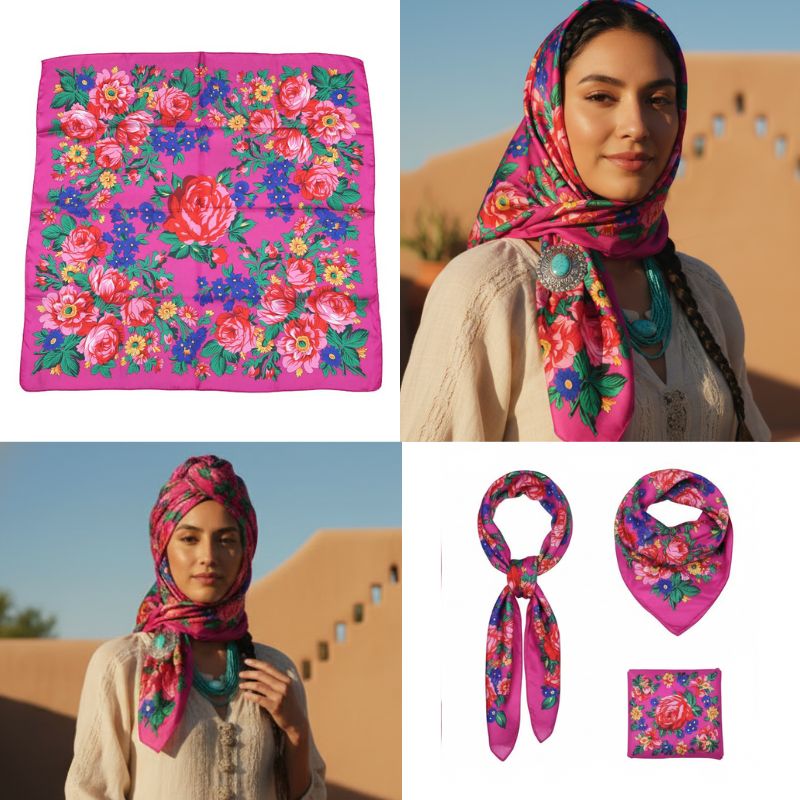 Kokum Floral Design Silk Touch Scarf Color: Fuchsia Size: 30″ x 30″ Material: 100% Polyester Design: Floral Art Quantity: 10 Pcs / Pack Sold By Pack!
