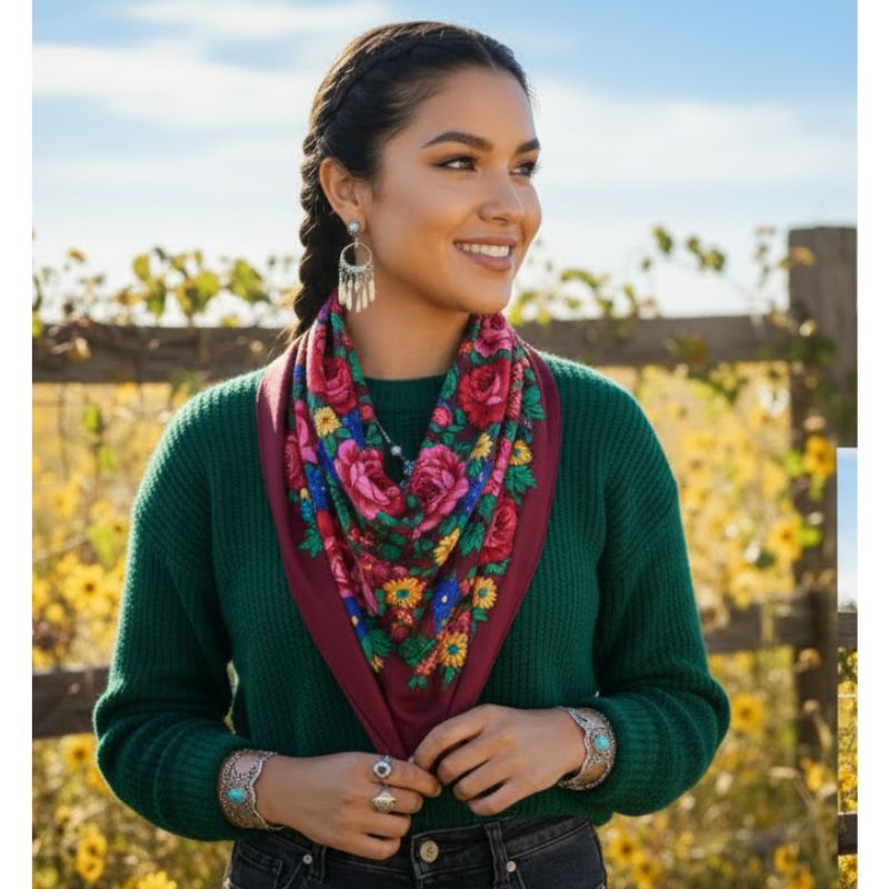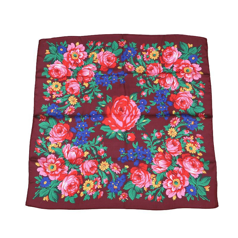 Kokum Floral Design Silk Touch Scarf Color: Wine Size: 30″ x 30″ Material: 100% Polyester Design: Floral Art Quantity: 10 Pcs / Pack Sold By Pack!