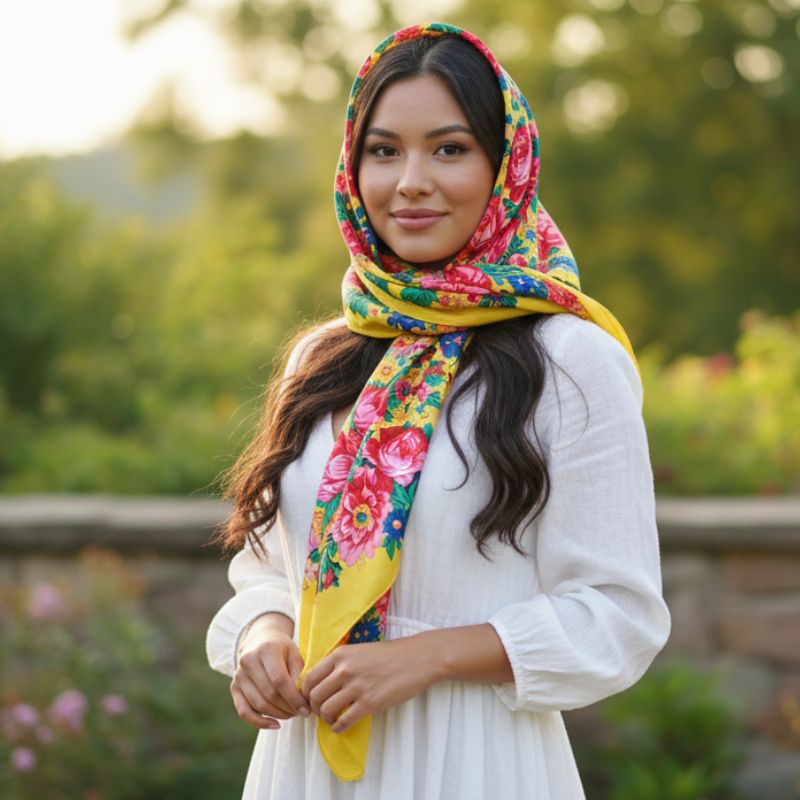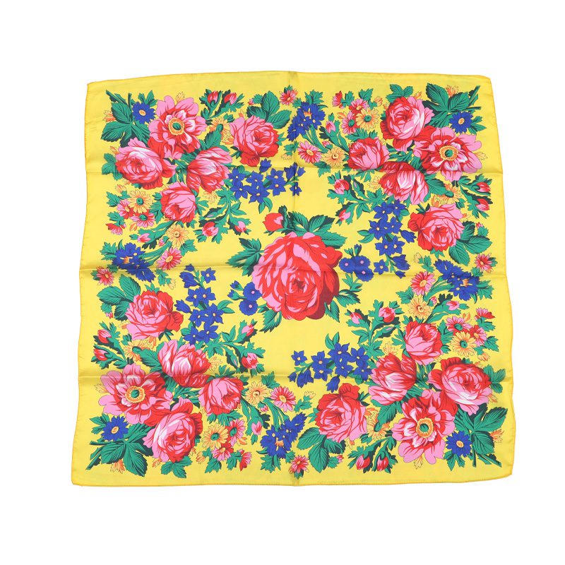 Kokum Floral Design Silk Touch Scarf Color: Yellow Size: 30″ x 30″ Material: 100% Polyester Design: Floral Art Quantity: 10 Pcs / Pack Sold By Pack!
