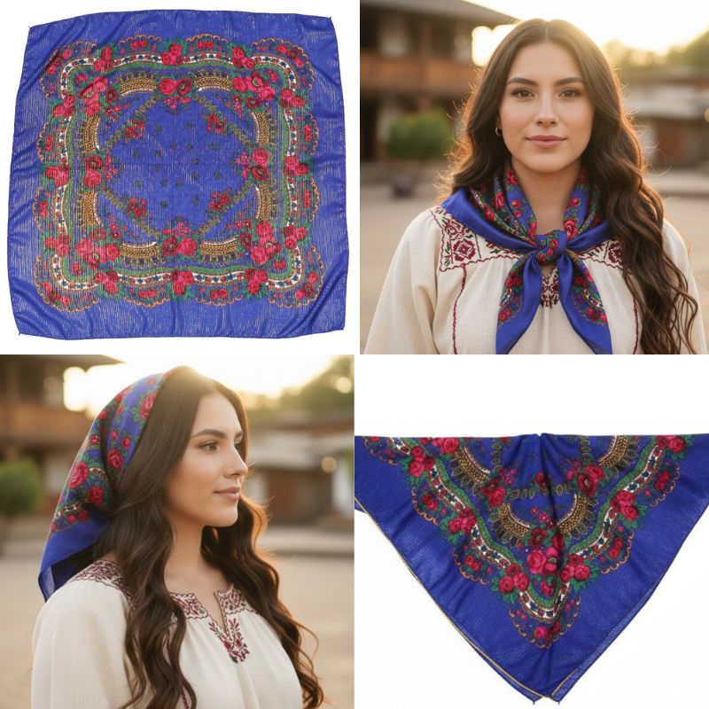 Floral Scarf Color: Blue Size: 31″ x 31″ (80*80 cm) Material: 100% Polyester Design: Floral Quantity: 10/Pack Sold By Pack!