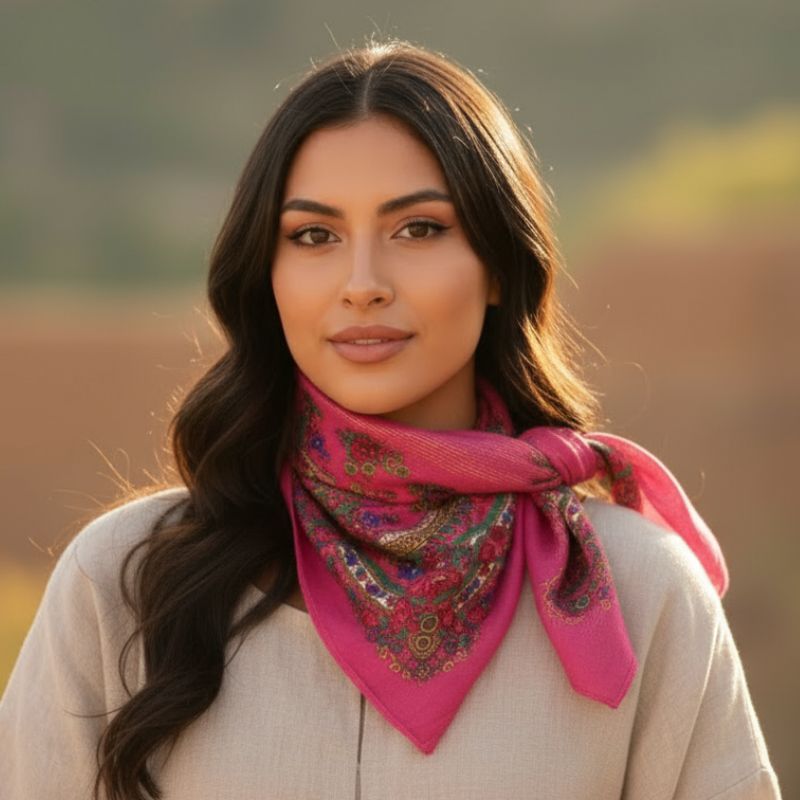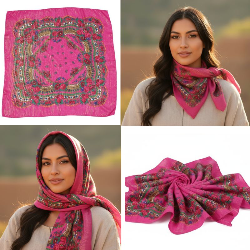 Floral Scarf Color: Fuchsia Size: 31″ x 31″ (80*80 cm) Material: 100% Polyester Design: Floral Quantity: 10/Pack Sold By Pack!
