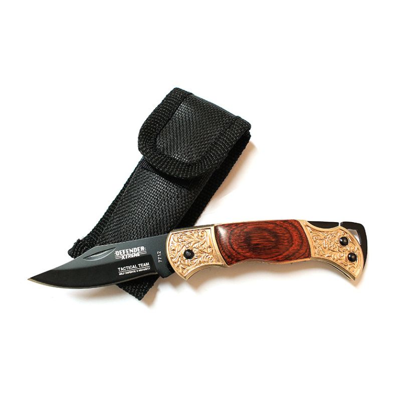 5.25″ Mini Tactical Team Wood & Bronze Handle Design Folding Knife with Pouch (7712)