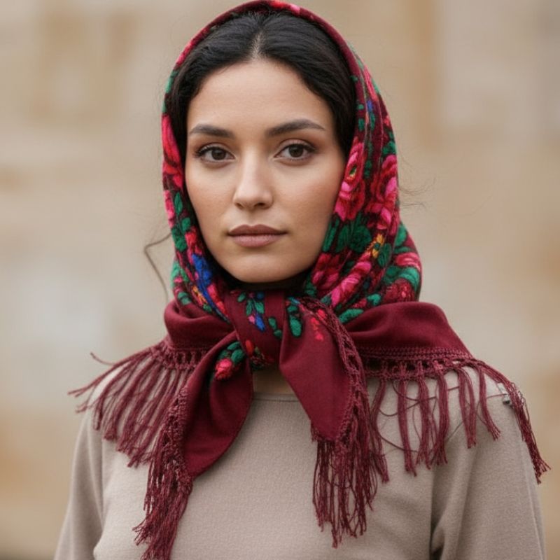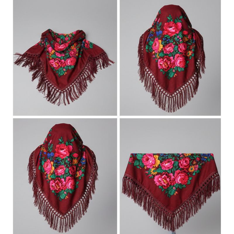 Metallic Kokum Floral Printed Scarf Size: 30″ x 30″ (75*75cm) Colour: Burgundy Design: Floral Style: Fringe Trim Quantity: 10/Pack Sold By Pack!
