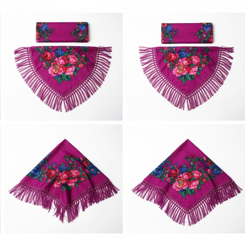 Metallic Kokum Floral Printed Scarf Size: 30″ x 30″ (75*75cm) Colour: Fuchsia Design: Floral Style: Fringe Trim Quantity: 10/Pack Sold By Pack!
