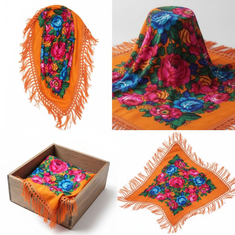 Non-Metallic Kokum Floral Printed Scarf Size: 30″ x 30″ (75*75cm) Colour: Orange Design: Floral Style: Fringe Trim Quantity: 10/Pack Sold By Pack!