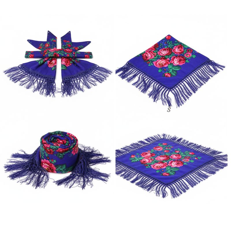Non-Metallic Kokum Floral Printed Scarf Size: 30″ x 30″ (75*75cm) Colour: Royal Blue Design: Floral Style: Fringe Trim Quantity: 10/Pack Sold By Pack!