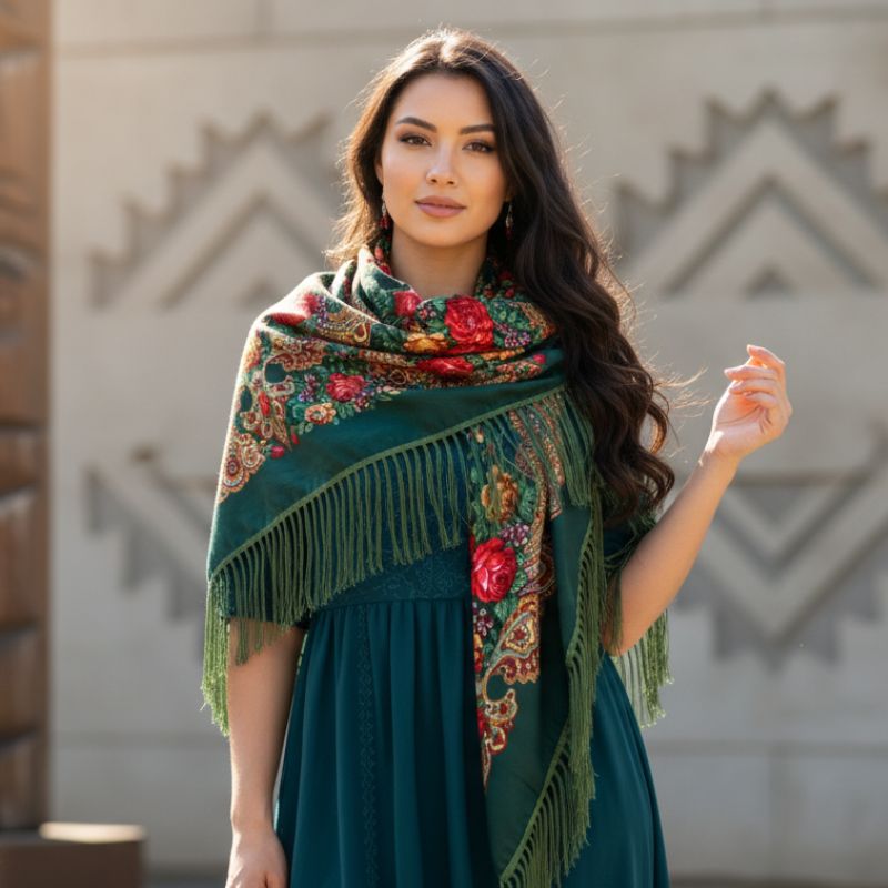 Floral Scarf Color: Green Size: 62″ x 62″ (160*160 cm) Style: Fringe Trim Material: 100% Polyester Design: Floral Quantity: 10/Pack Sold By Pack!