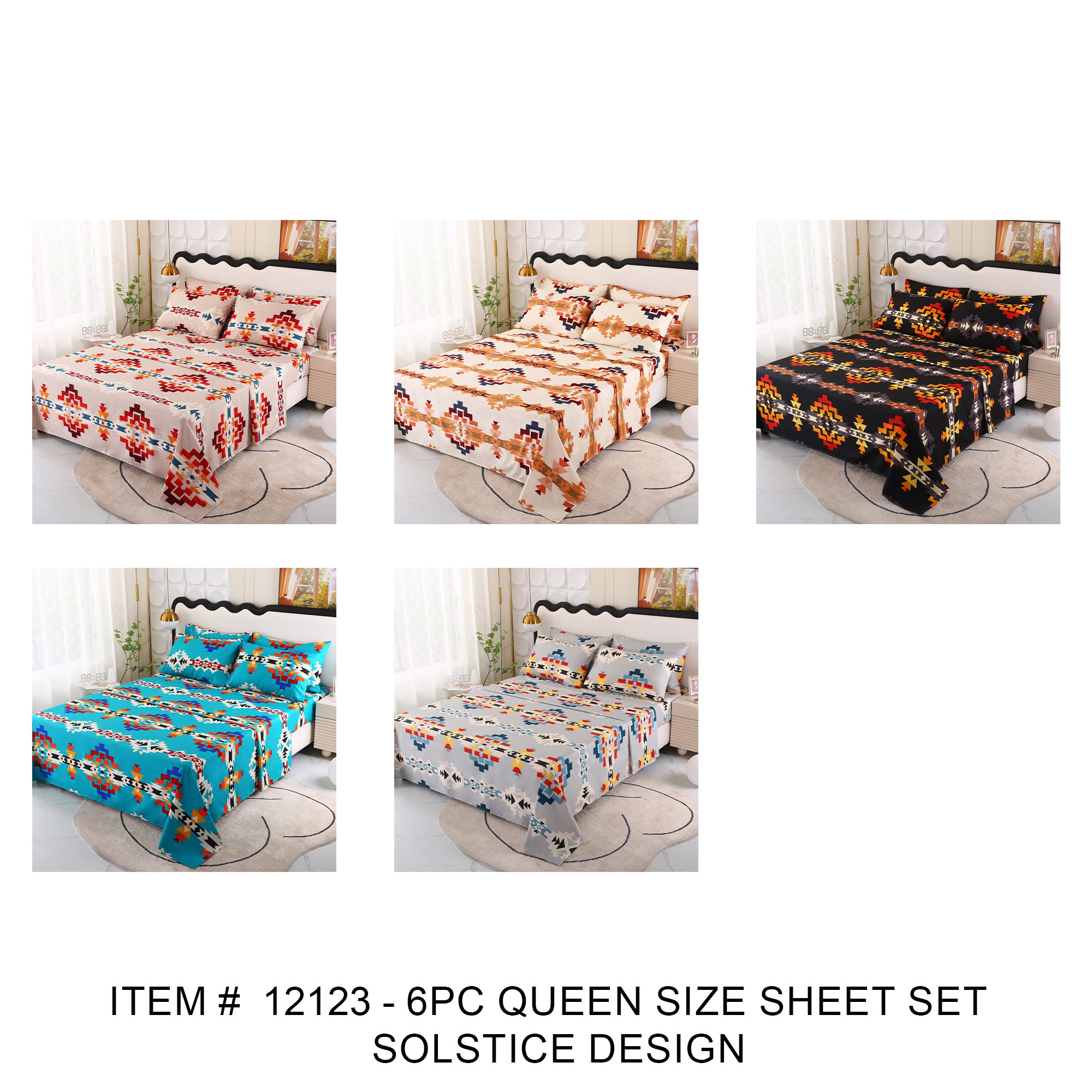 Sheet Set, Queen Size, Solstice Design Color: Assorted Size: Queen Quantity: 12Pcs/Box Sold by Box!