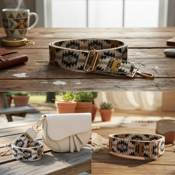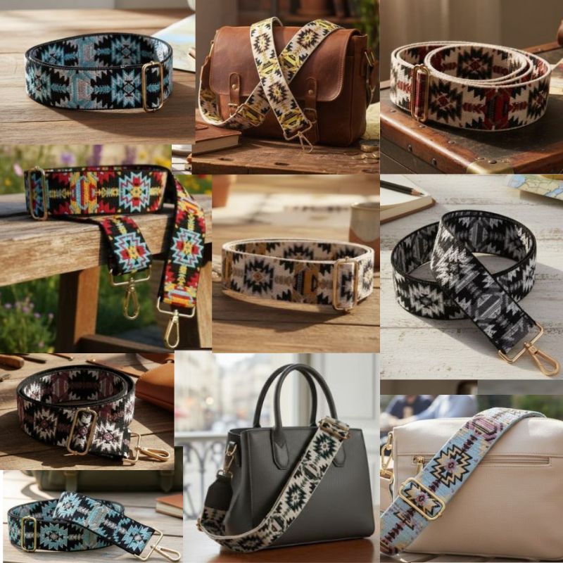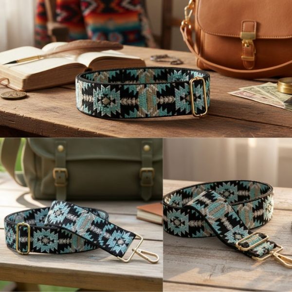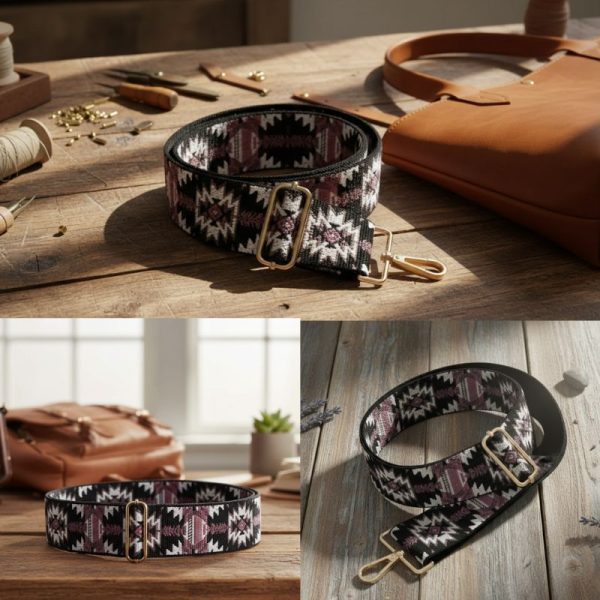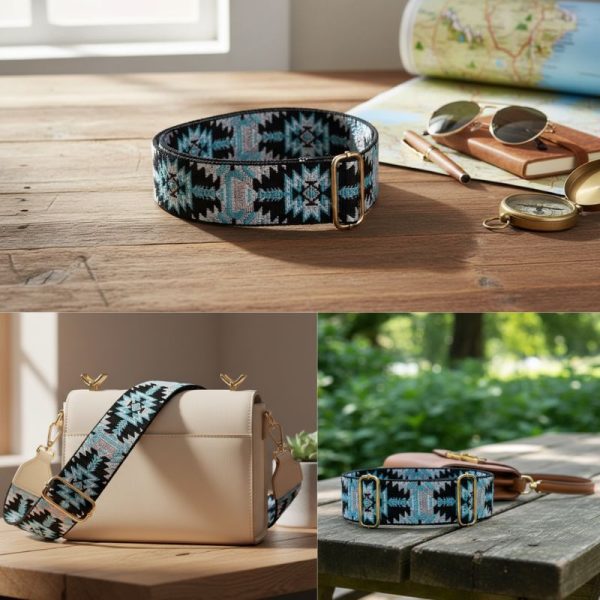 Adjustable Aztec Embroidered Guitar Strap for Crossbody Bags