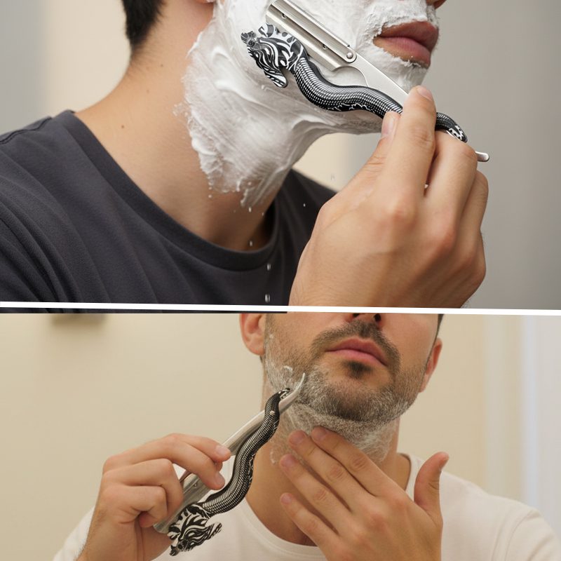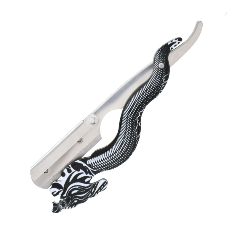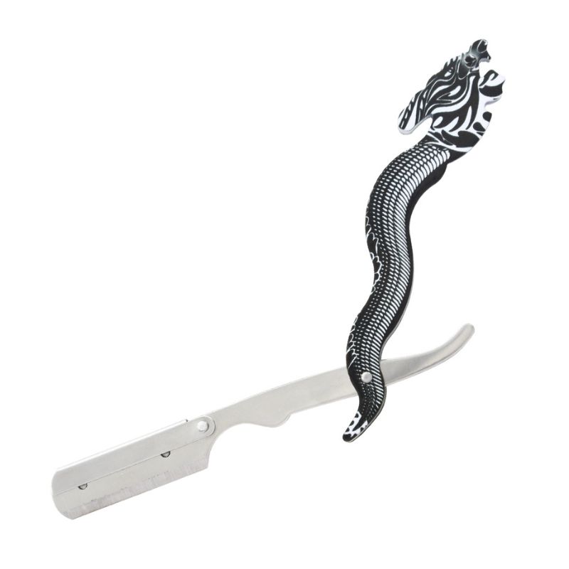 Barber Salon Dragon Style Handle Throat Shaving Razor – 10 Blades – Black & White (12316)