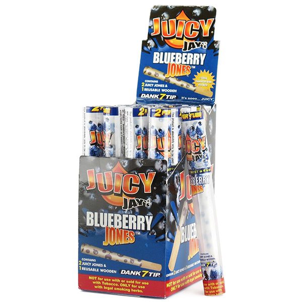Cigarette Paper: Juicy Jay’s Jones; Pre-Rolled Cones Flavour: Blueberry Product Line: Juicy Jays Quantity: 24/Packs of 2 cones & 1 tip/Display Sold by Display!