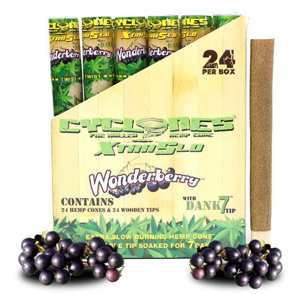 Cigarette Paper: Cyclones, Hemp Wraps, Xtra w/Tip Flavour: Wonderberry Product Line: Cyclones Quantity: 24pack/Box Sold by Box Only!