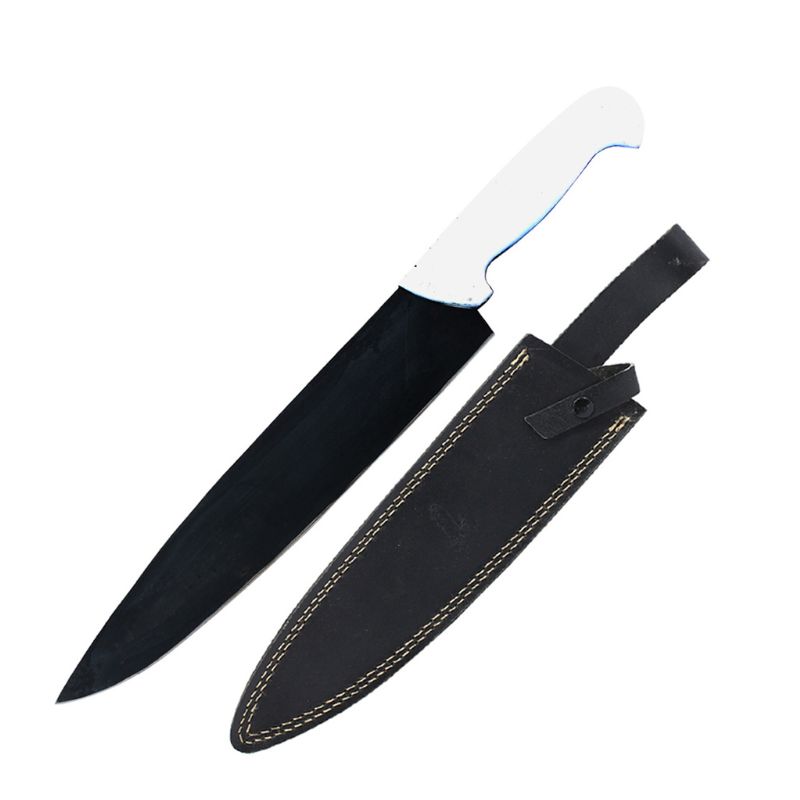 Defender Plastic Mould White Handle Black Blade Hunting Knife With Sheath