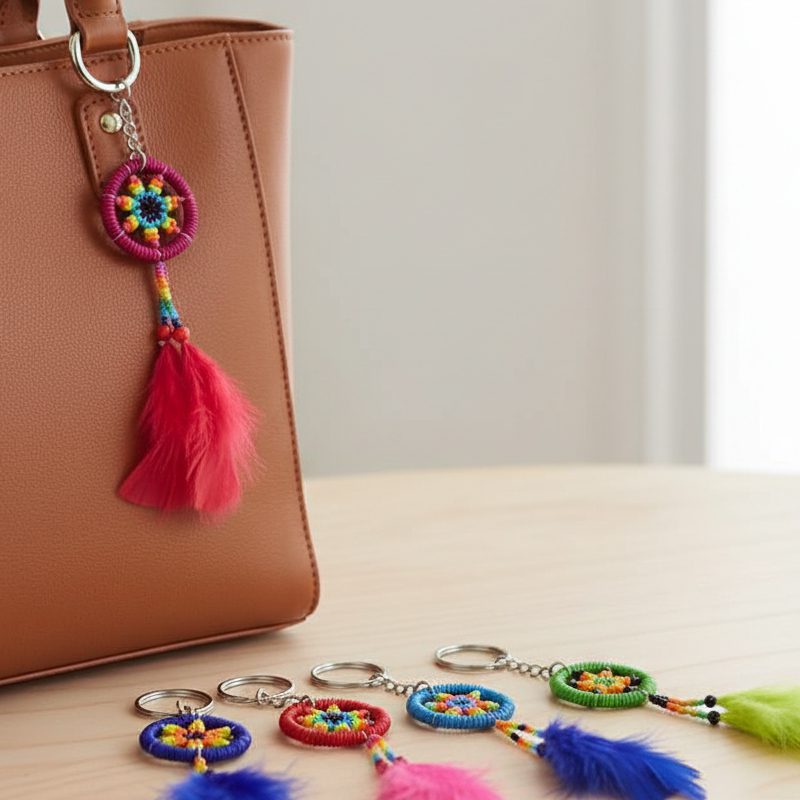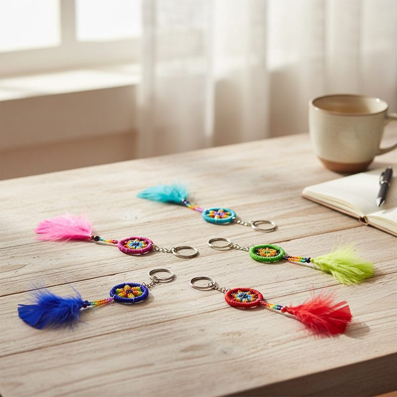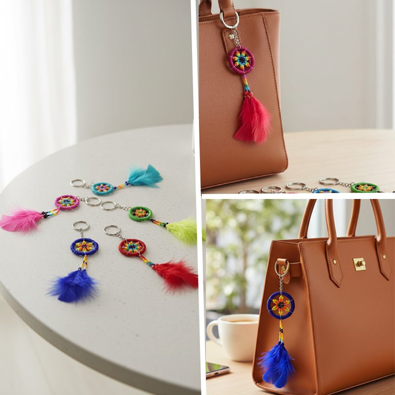DREAM CATCHER FEATHER KEYCHAIN Color: Assorted Quantity: 12 /Pack Sold By Pack only!