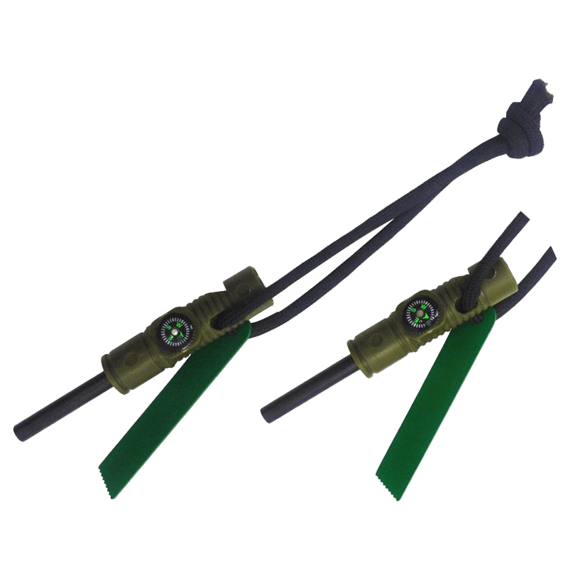 Fire Starter, Compass & Whistle on Firecord – Green (T405010GN)