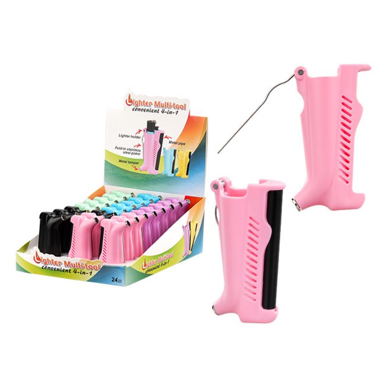 4 in 1 tool with lighter holder Sleeve Material: Plastic Color: Assorted Quantity: 24 Pcs/Display Sold by Display!