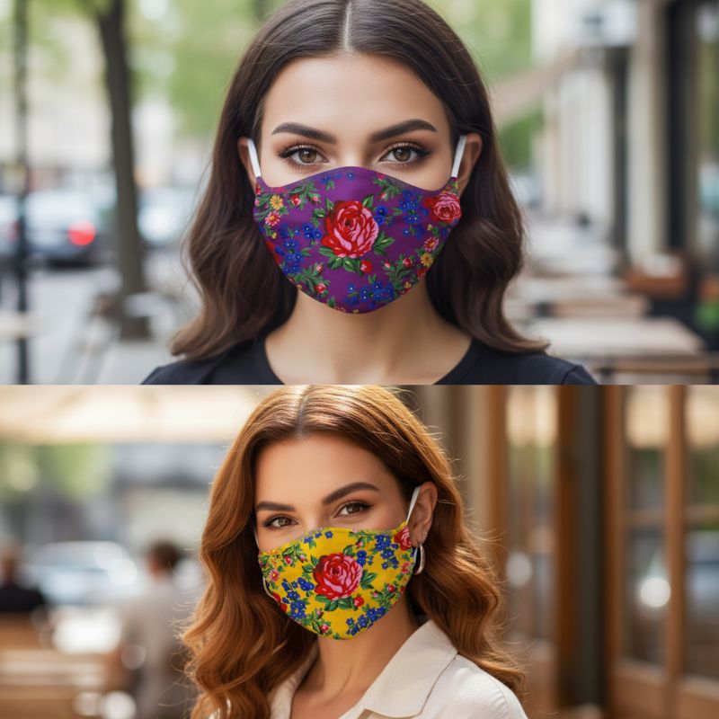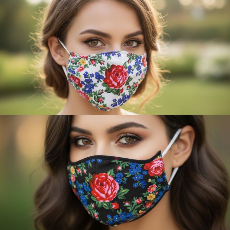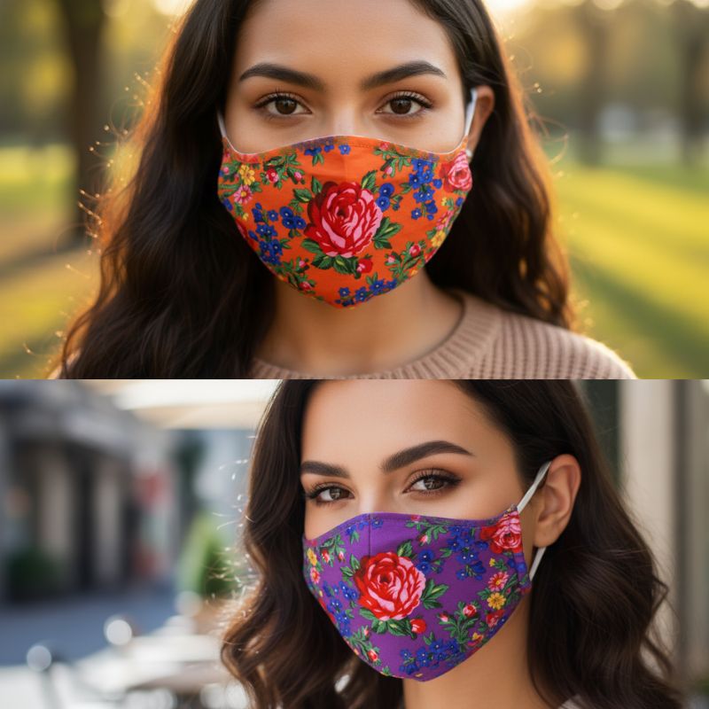 Washable/Reusable Cotton Face Mask Floral Design Colour: Assorted Comes with 2 Removable Filters 10pcs/Pack Sold by Pack Only!
