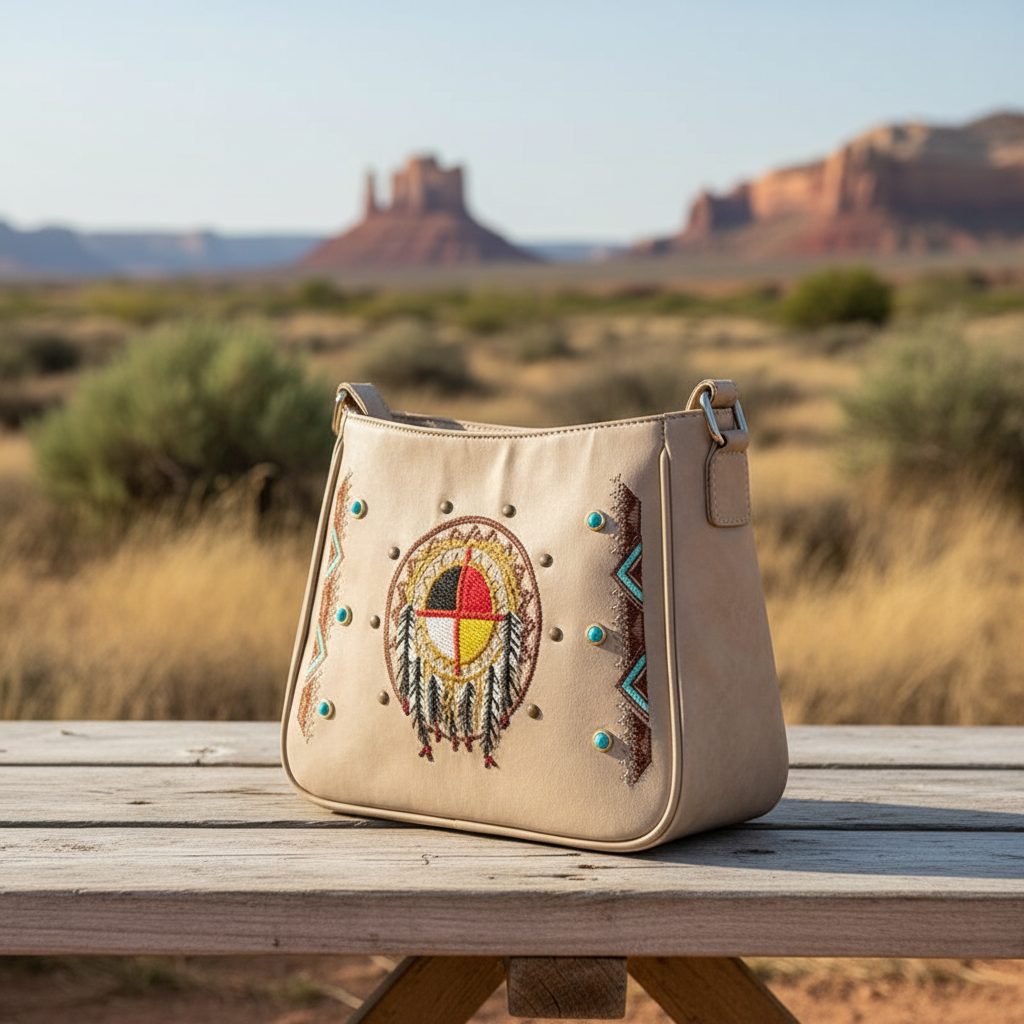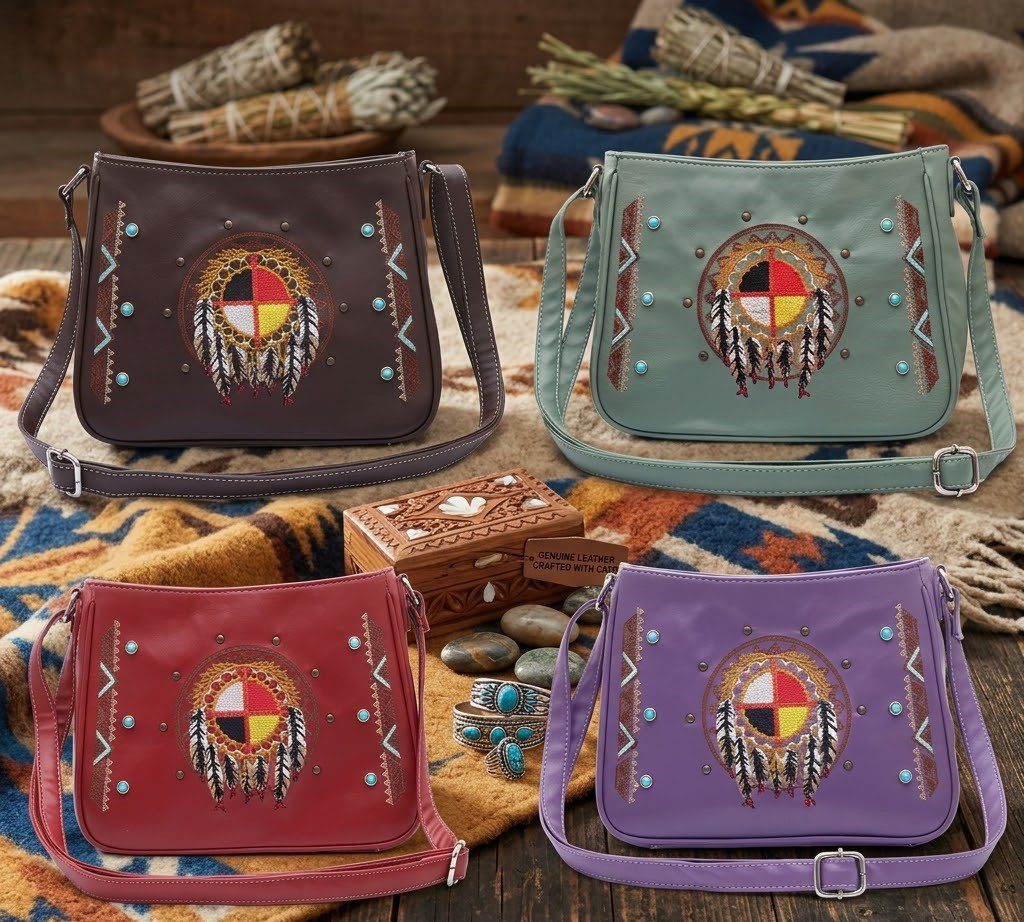 Fashion Embroidered Handbag Colour: Assorted Design: Medicine Wheel Quantity: 12/Pack Sold By Pack!