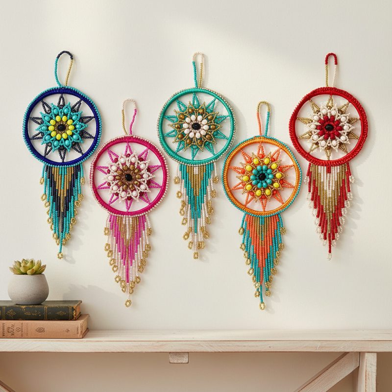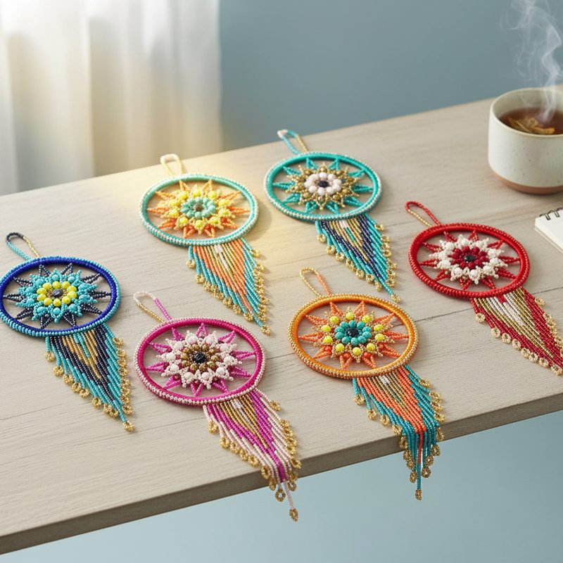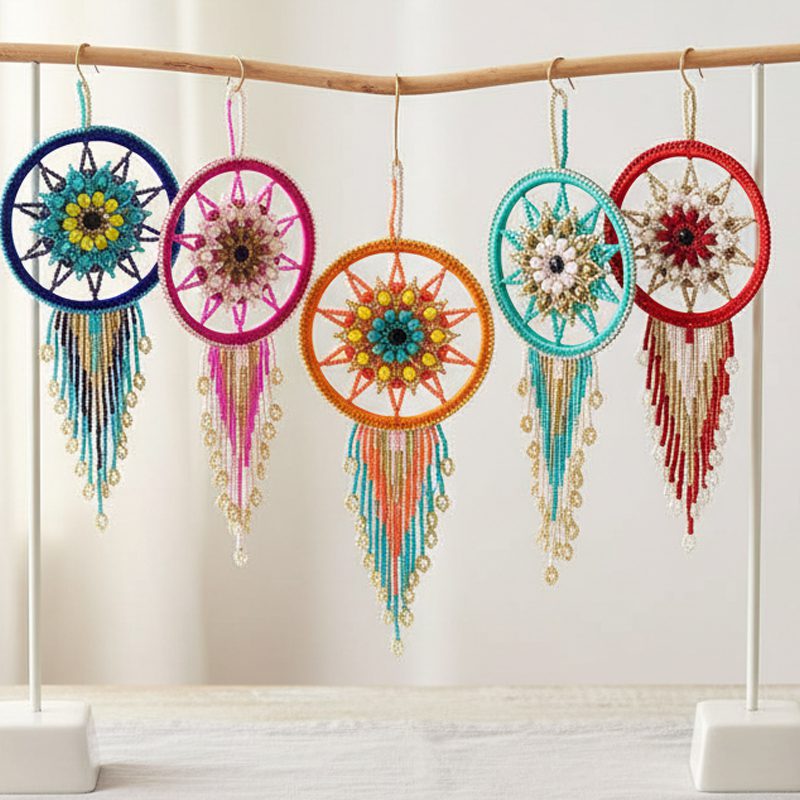 Hand Made Seed Bead Dreamcatcher Flower Ornaments