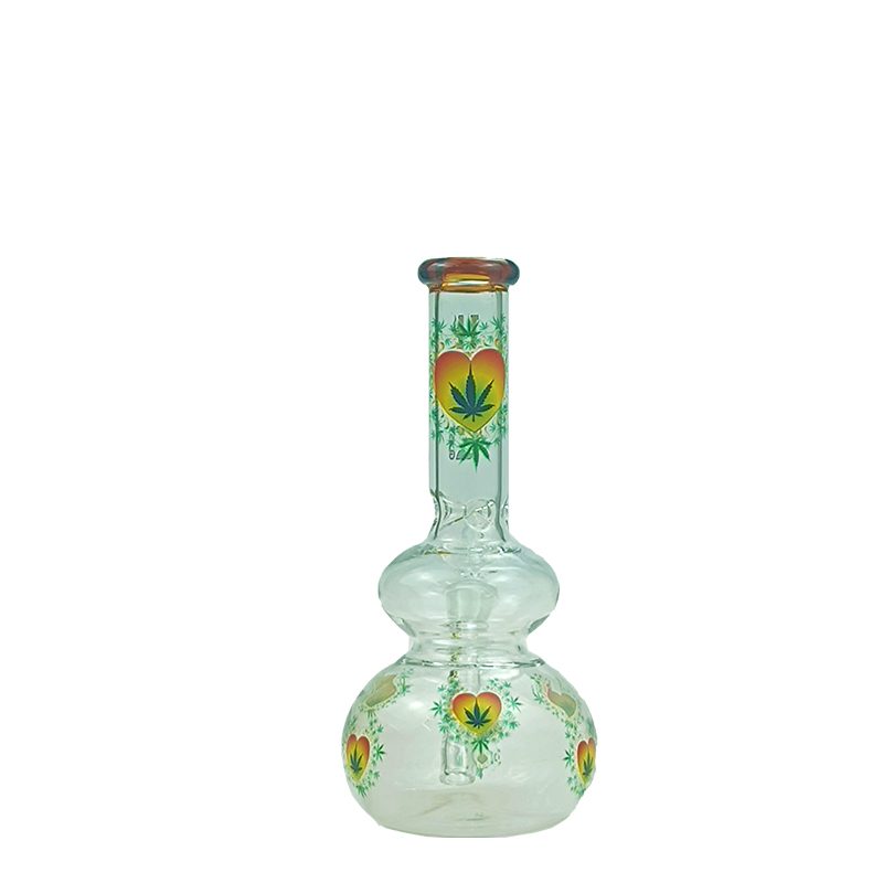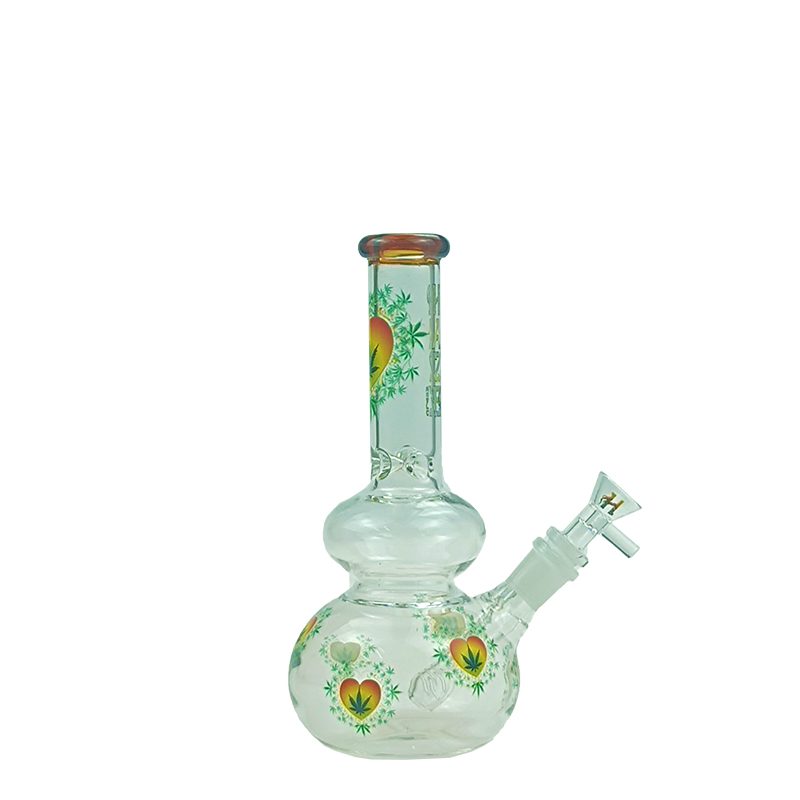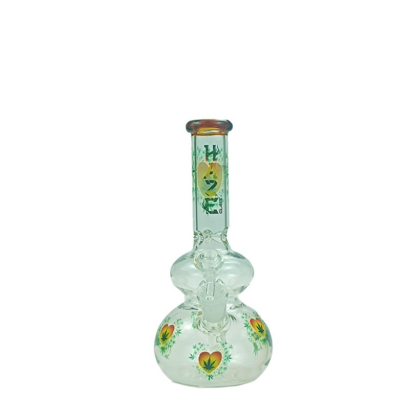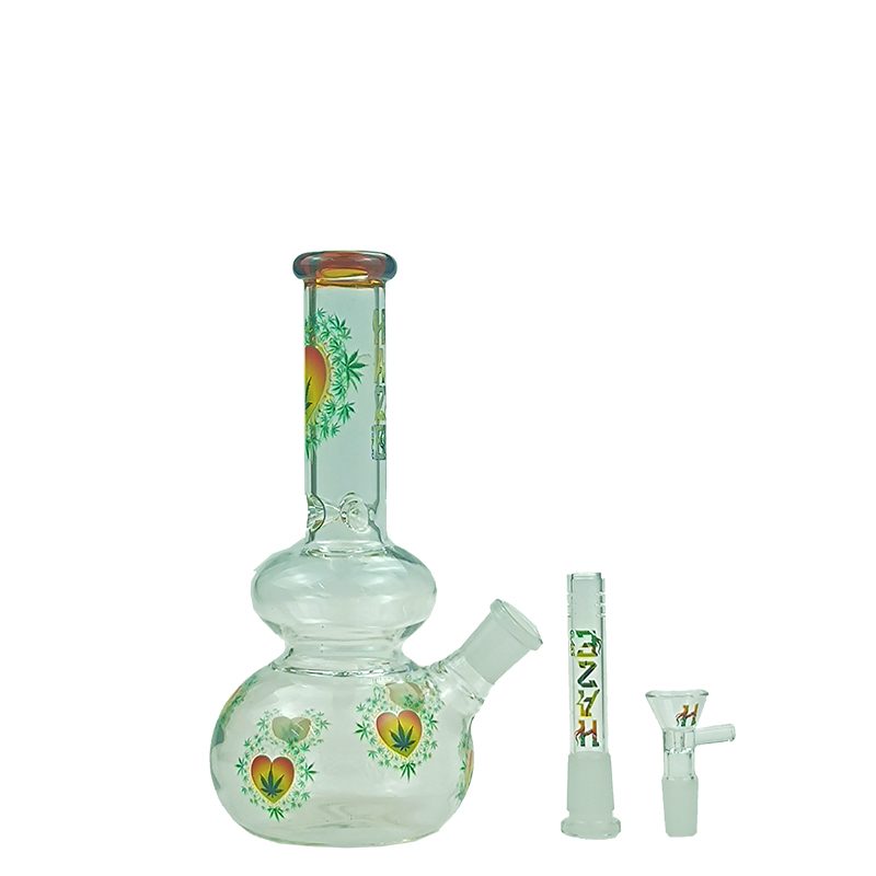 Haze Glass Bong Heart Leaf double bubble base bong with color lip – Amber