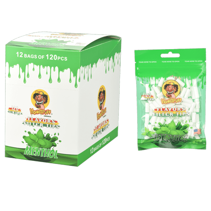 HoneyPuff Flavors Filter Tips-Menthol Size.0.5” Dia:6mm Quantity:120pcs/bag, 12 bags/display Sold by Display!