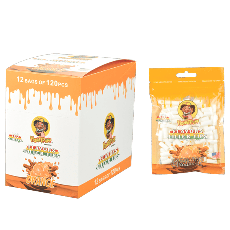 HoneyPuff Flavors Filter Tips-Orange Size.0.5” Dia:6mm Quantity:120pcs/bag, 12 bags/display, Sold by Display!