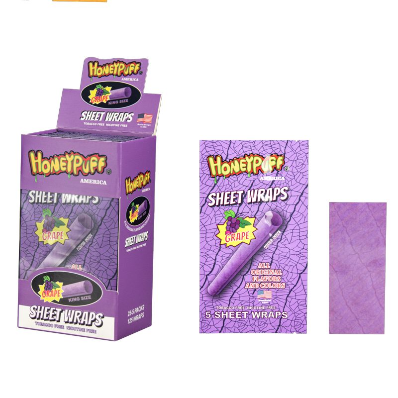 HoneyPuff Sheet Wrap-Grape Flavor Size:4.5*2” Quantity:5leaves/pack, 25pack/display Sold by Display!