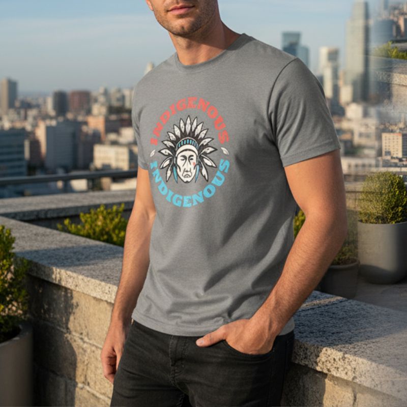 Indigeneous Graphic Tees, Grey T-Shirt, Cotton Design : Graphic Size: S-2XL Quantity: 12Pcs/Box Sold by Box!