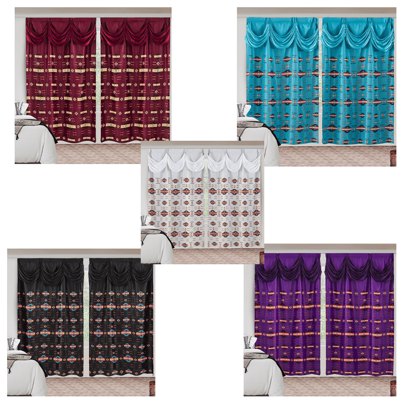Luxurious Blackout Curtain With Taffeta Valance Pair Color: Assorted – Black| White| Purple | Turquoise | Burgundy Quantity : 12 Pcs / Box Sold by Box!