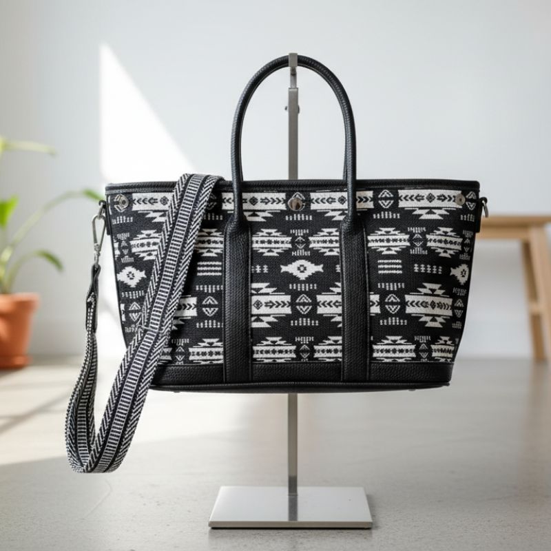 Modern Mosaic Handbag / Purse Color: Black n White Size: Standard Design: Mosaic Style: Hand Bag Quantity: 12Pcs/Box Sold by Box!