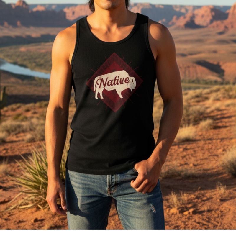 Native Buffalo Graphic Black Tank Top, Cotton Design : Graphic Size: S-2XL Quantity: 12Pcs/Box Sold by Box!