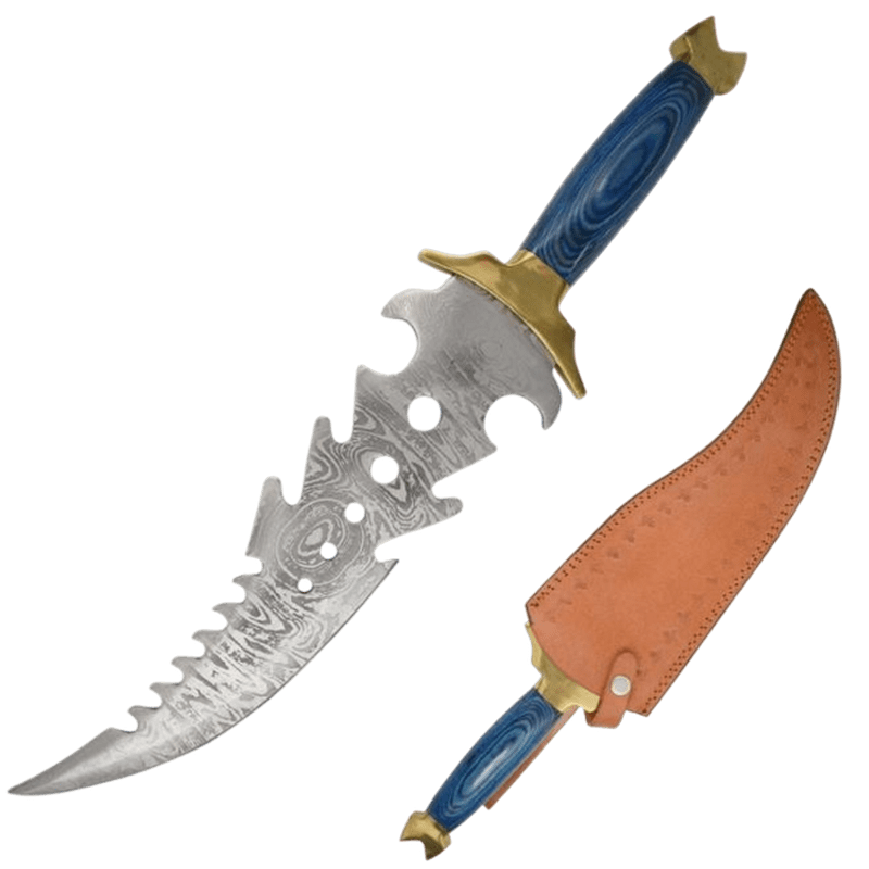 – 7.25″ Blue Wood Handle With Brass Hilt.