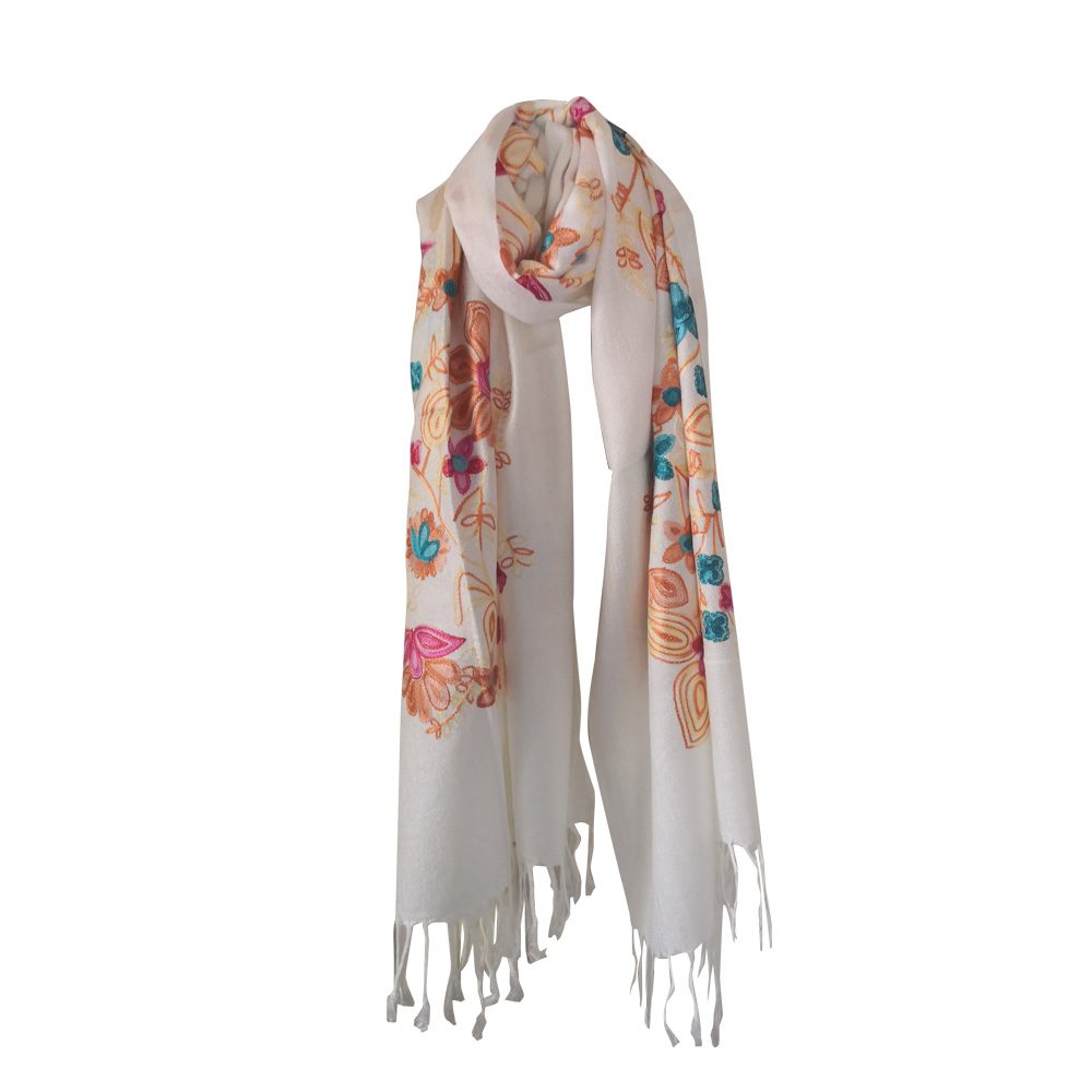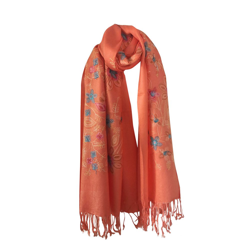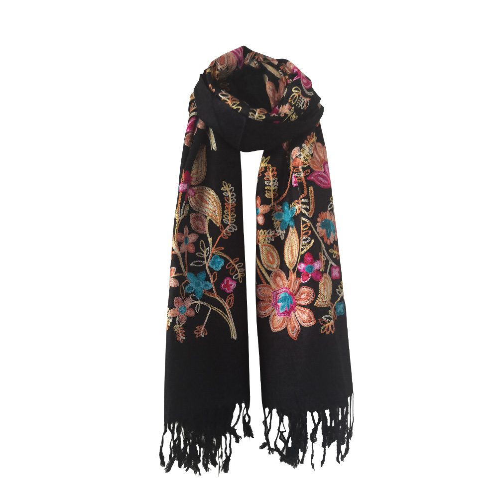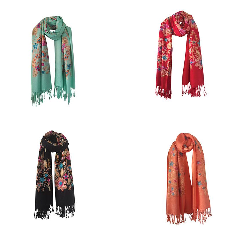 Pashmina Quality Scarves – Embroidered Floral Design Color: Assorted Design: Floral Quantity: 10/Pack Sold By Pack!