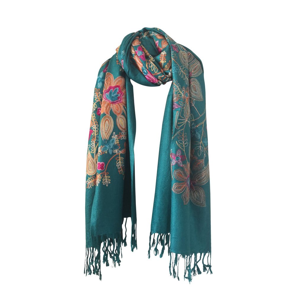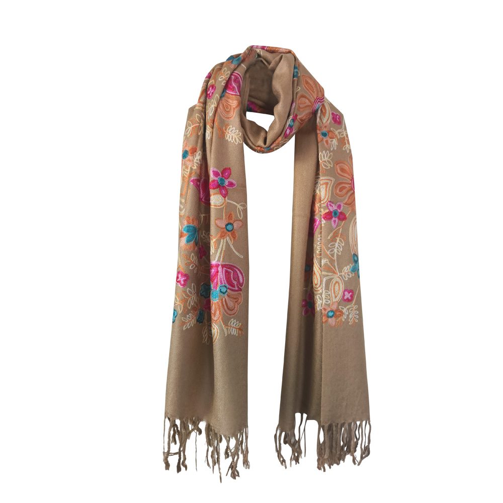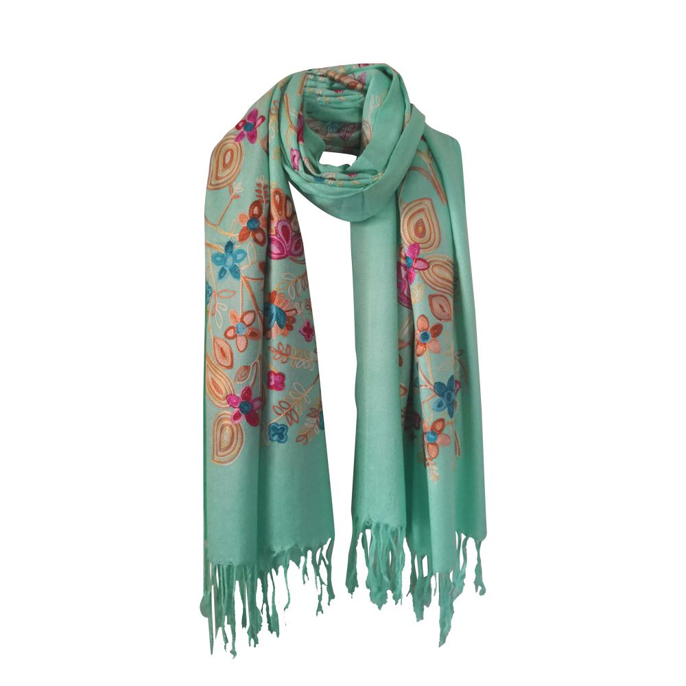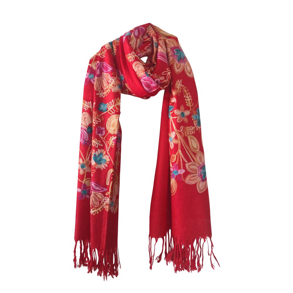 Pashmina Quality Scarves – Embroidered Floral Design Color: Assorted Design: Floral Quantity: 10/Pack Sold By Pack!