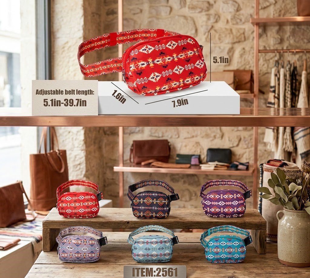 Printed Belt Bag Design: Solstice Design Brand: Nu Trendz Color: Assorted Size: 1.6″x 7.9″x 5.1″ Style: Crossbody Quantity: 24 Pcs/Pack Sold in Pack!