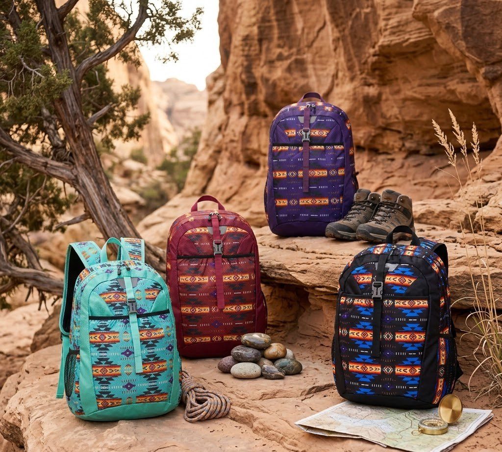 Collapsible Printed BackPack Style 1 Color: Assorted (Black, Turquoise, Mint, Purple, Burgundy, Grey) Quantity: 24/Box Sold by Box Only!