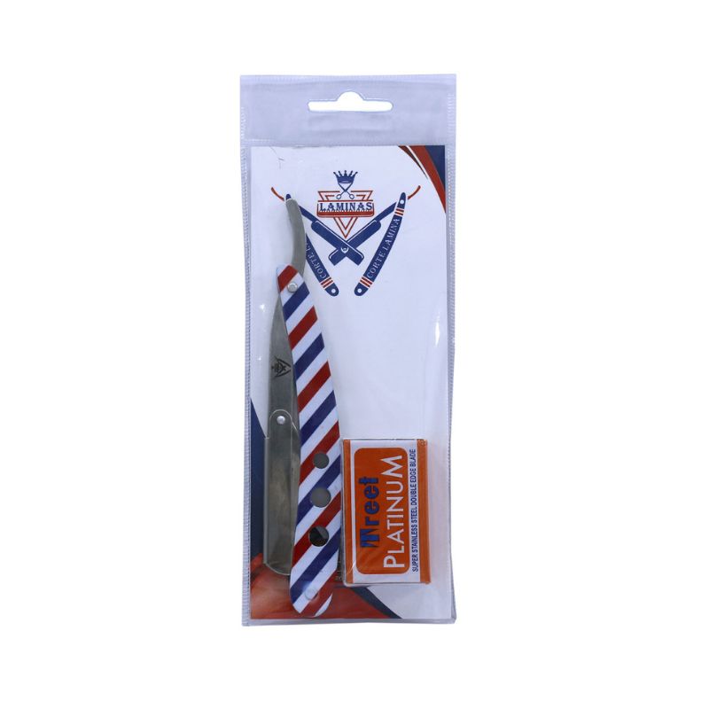 Professional Paper Coated Barber Salon Throat Shaving Razor With 10 Blades – White/Red/Blue (12313)