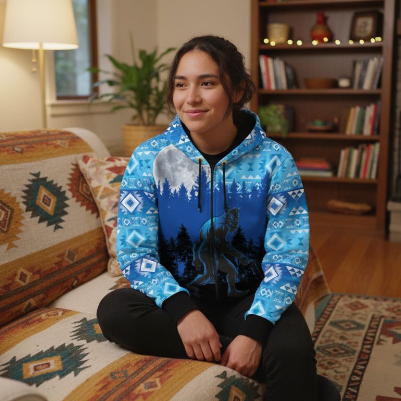 Sasquatch Blue, Textured Zip UP Hoody Size: 3XL-5XL Color:Blue Design: Sasquatch Bigfoot Quantity: 12Pcs/Box Sold by Box!