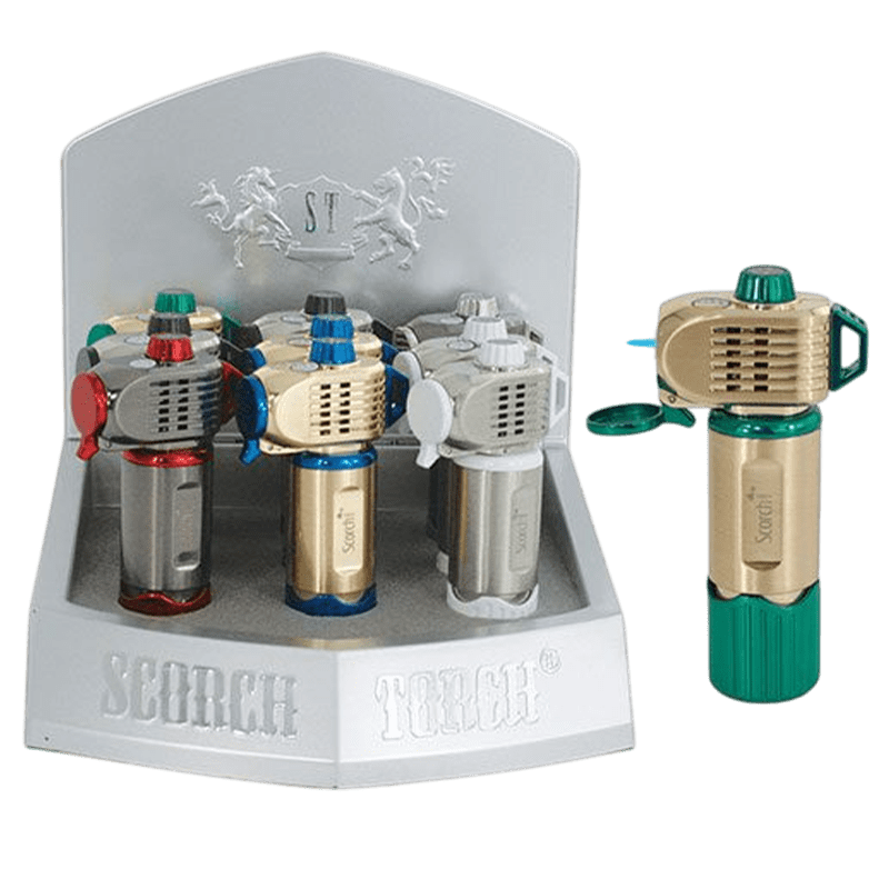 Scorch Torch 4″ Triple Torch Cigar Lighter w/ Cigar Punch and Trigger Lock Color: As in Picture Design: As in Picture Safety Lock: 9Pcs/Display Sold by Display!