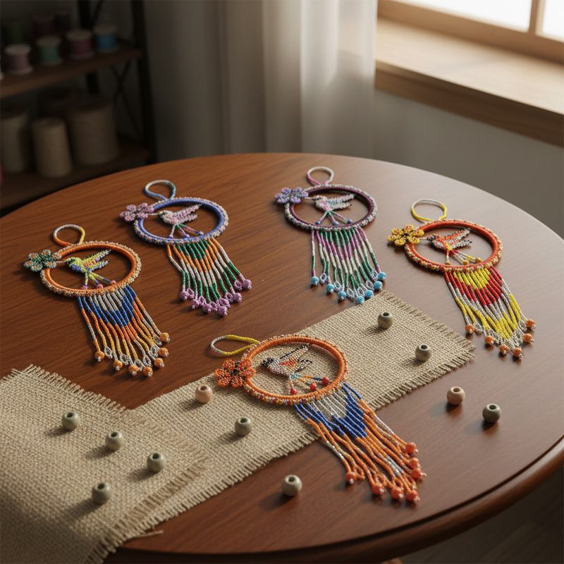 Design: Seed Bead Humming Bird Shaped Dream Cather Ornaments