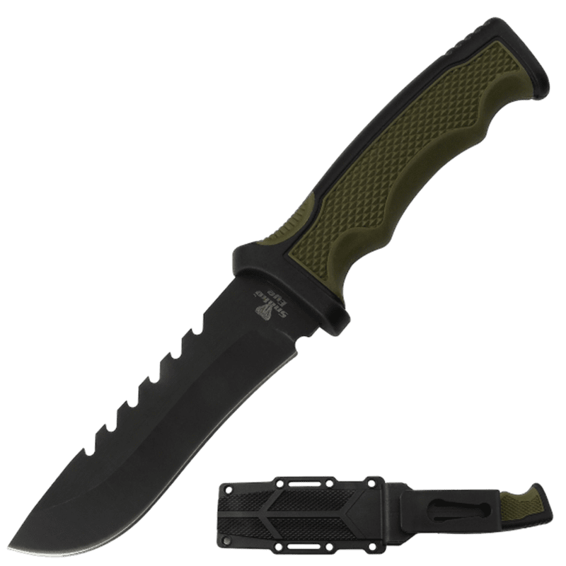 With Saw back Two Tone Green and Black Handle.