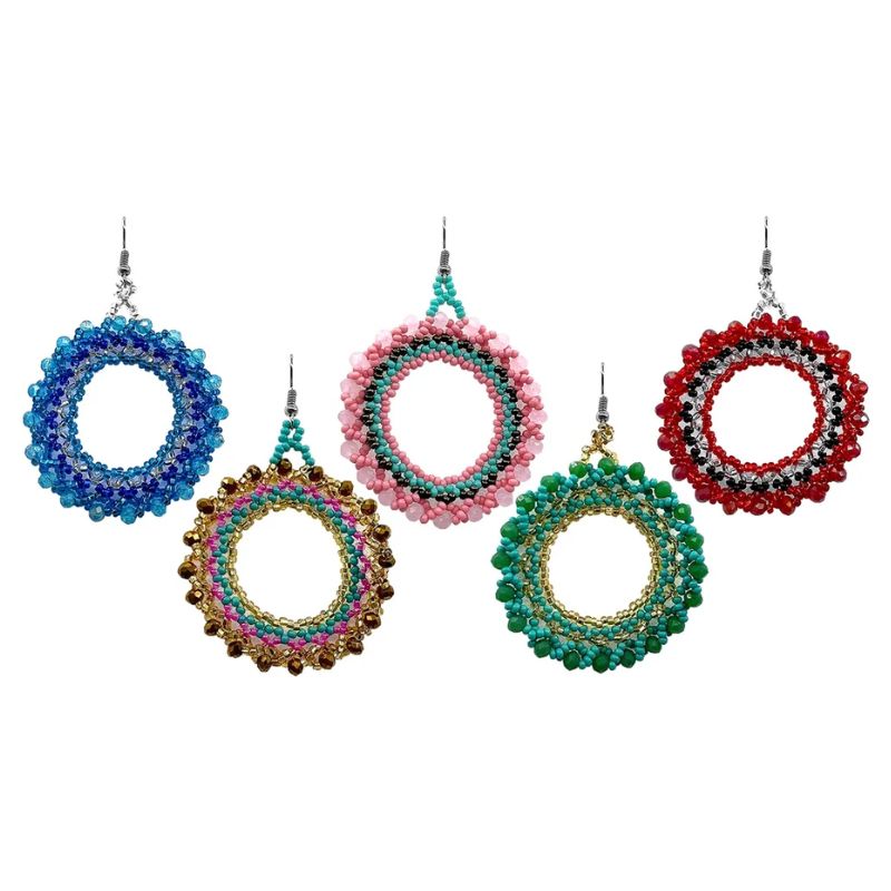 Thick Guatemalan Crystal Beaded Hoop Dangle Earrings