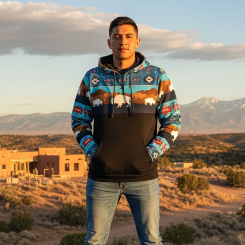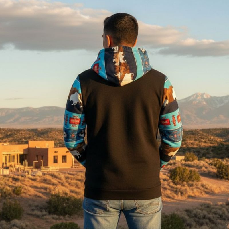 White Buffalo Design Collection Chest & Arms Printed Long Sleeve Hoodie