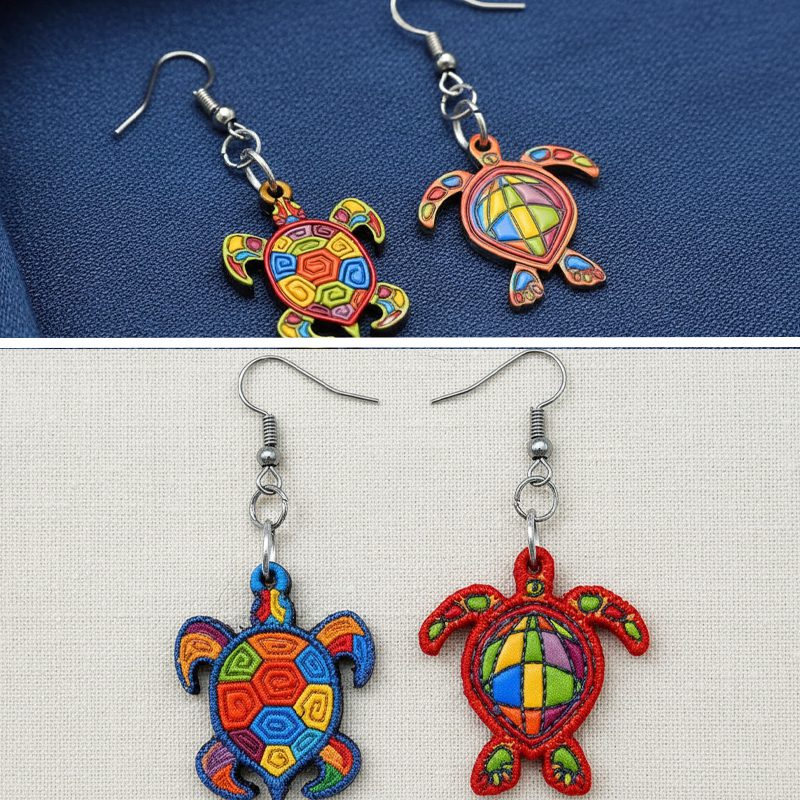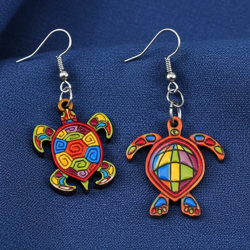 Wooden Geometric Sea Turtle Animal Dangle Earrings
