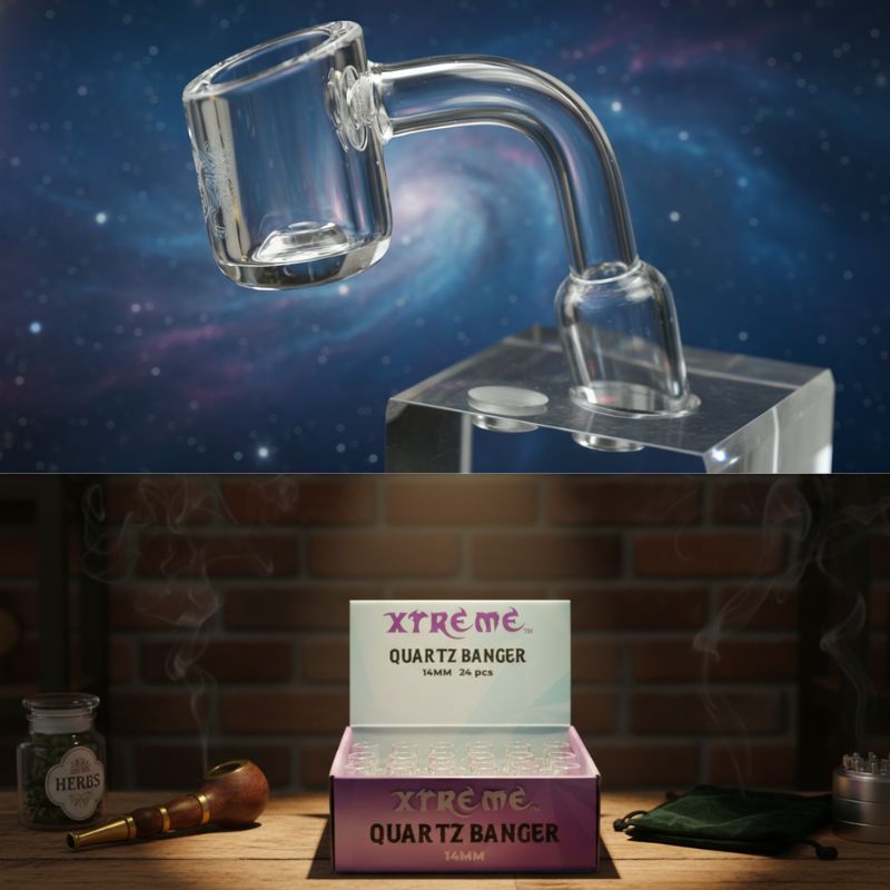 Xtreme 14mm Flap top Sandblasting Banger-Male joint -90° Wall Thickness:2mm Colour: Clear Quantity: 24pcs/Display Sold by display!