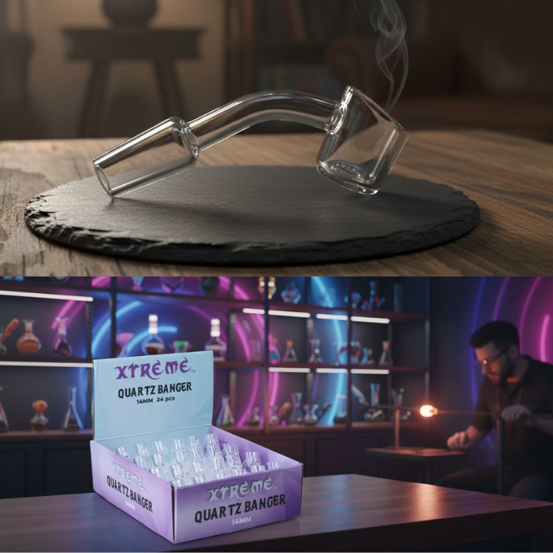 Xtreme 14mm Quartz Flap top Banger-Male Joint-90° Wall Thickness:2mm Colour: Clear Quantity: 24pcs/Display Sold by display!
